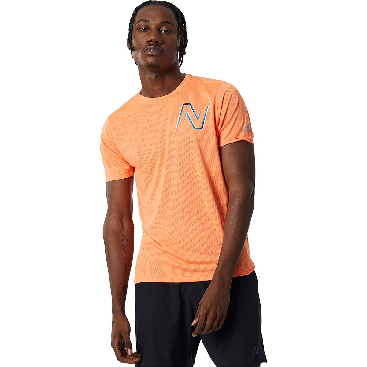 Push it to the limit with our Graphic Impact Run Short Sleeve. This men's short sleeve shirt offers comfort features including premium mesh fabric for breathability plus NB ICEx fast-drying technology to help you feel comfortable no matter how long you run. Reflective branding and piping add stylish detail.